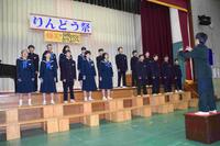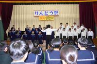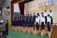 本日、りんどう祭が、本校体育館にて開催されました。実行委員を中心に企画・運営がなされました。午前中は、スローガン表彰の後、少年の主張、英語スピーチ、合唱、吹奏楽演奏が行われました。途中、雷が激しくなり時間調整をしたため、予定の時間をオーバーしての発表となりましたが、生徒たちは今までの練習の成果を発揮し、素晴らしい合唱を披露していました。