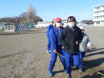 今日の業間の時間は体力つくりがありました。今日は学級ごとに8の字もおかぴょんの練習をしました。
