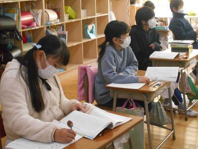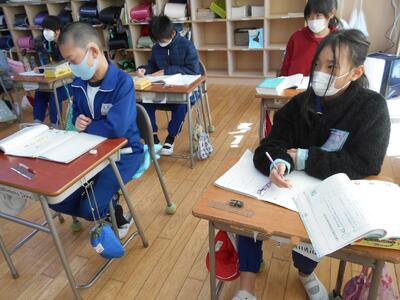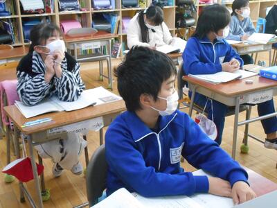今日は4年1組の国語と4年2組の算数の授業、6年生の書写の授業の様子をお伝えしたいと思います。