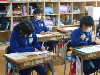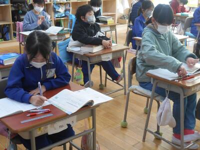 今日から3年生から6年生の真岡市学力調査が始まりました。子どもたちは真剣な表情でテストに取り組んでいました。