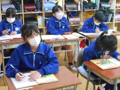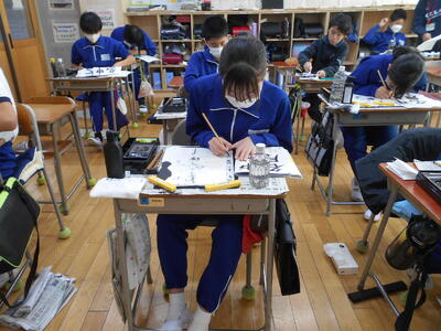 子どもたちは黙々と清書に取り組んでいて、たくさんの素晴らしい作品が完成したことと思います。