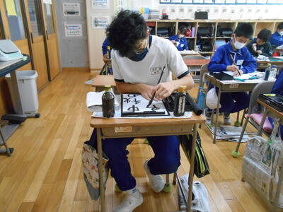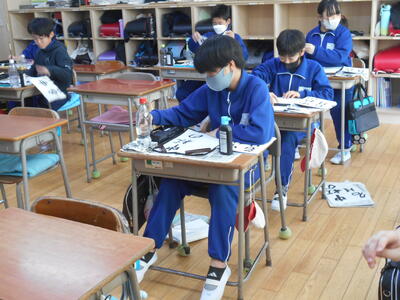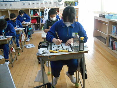 6年生の毛筆は「中秋の名月」の清書をしていました。半紙に5文字はなかなか難しい課題です。最後まで集中して、がんばって欲しいと思います。