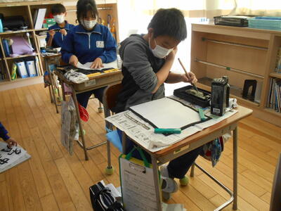 3年生は版画の制作をしていました。どの作品も素晴らしく、完成がとても楽しみです。