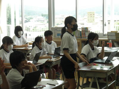 今日は3年1組の学活の授業と3年2組の体育の授業の様子をお伝えしたいと思います。
