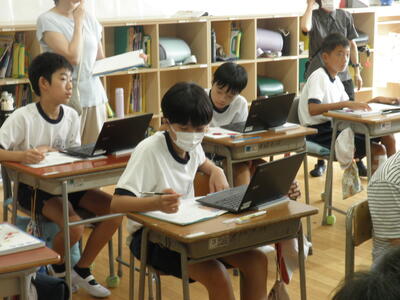 今日は学校に残っている1年生と2年生、5年生の授業の様子をお伝えしたいと思います。