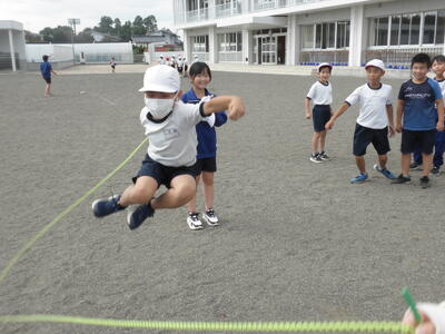 3年2組は体育の授業で、運動会の団体種目の練習でした。