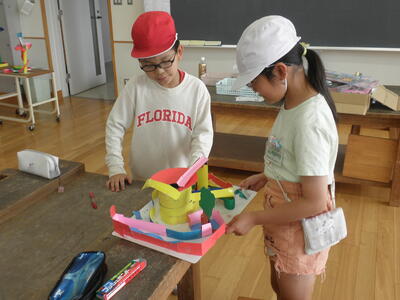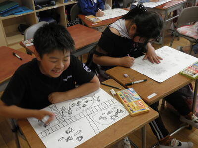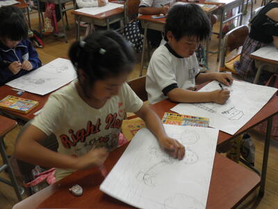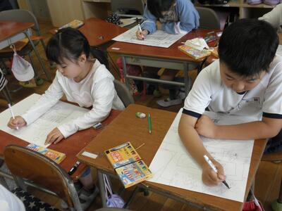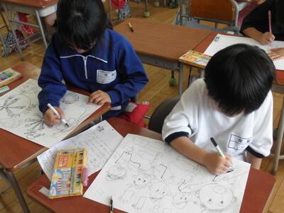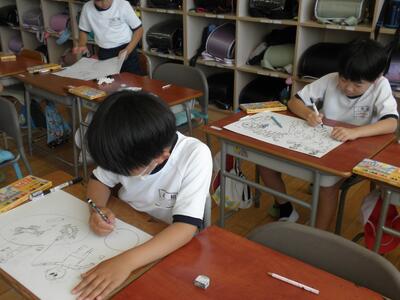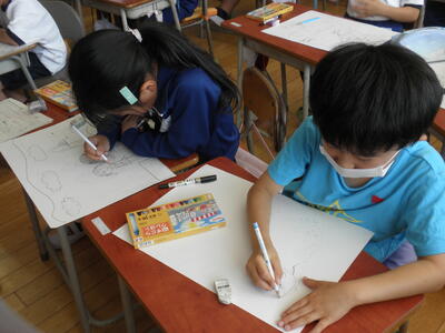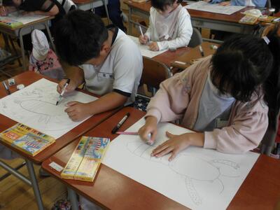 今日は、4年2組の図工と5年生の算数の授業をお伝えしたいと思います。