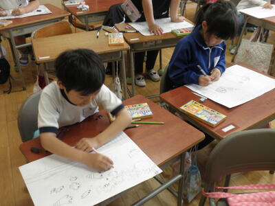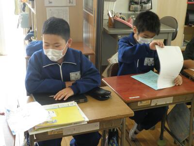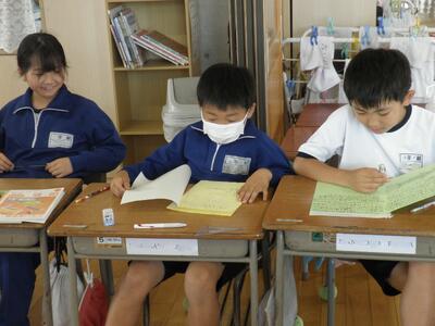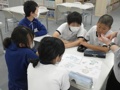今日は、インターネットなどで調べながら作った『生き物ずかん』を互いに読み合い、感想を交換し合いました。