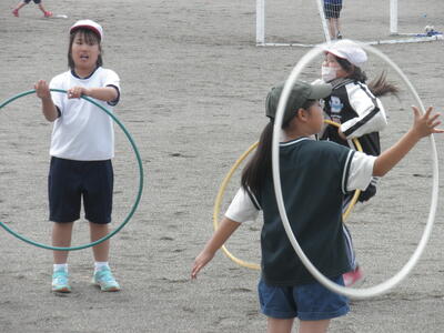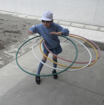 今日のパフォーマーさんたち!!フラフープを自在に操る2年生と4年生です。