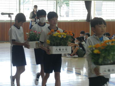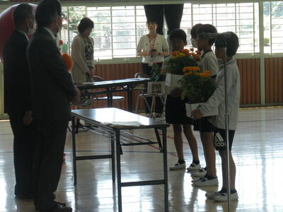 贈呈式では、運営委員会の児童たちが司会進行や開閉会の言葉、感謝の言葉などを担当し、式を運営してくれました。
