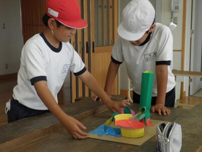 4年2組はコロコロガーレの作品が完成したので、今日はみんなで作品で遊ぶ時間でした。