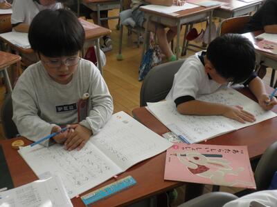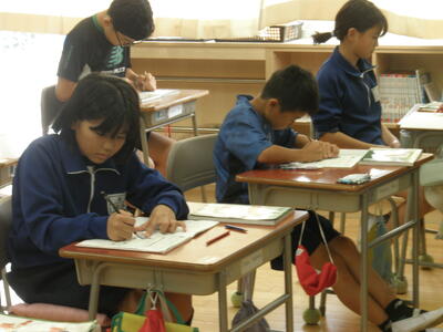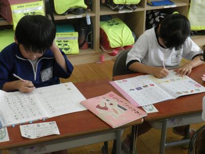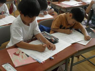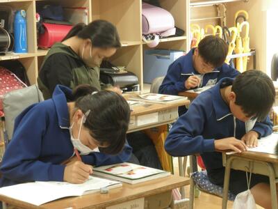 一文字一文字丁寧に、担任の先生から指導を受けながら練習することができました。