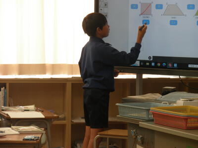 5年生の算数は単元名「合同と三角形、四角形」でした。