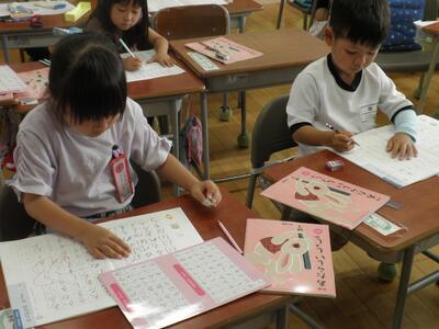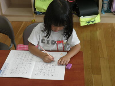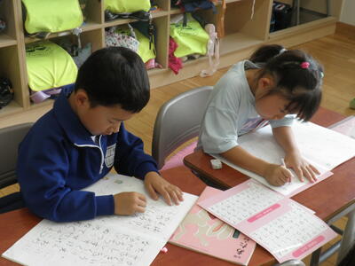 子どもたちは真剣な表情で、五十音の練習をしていました。
