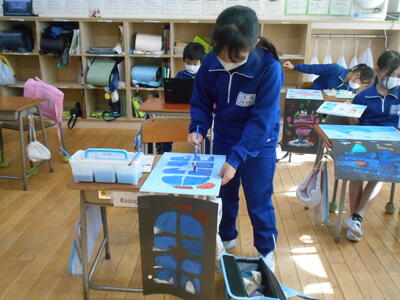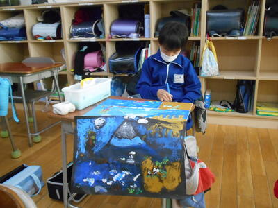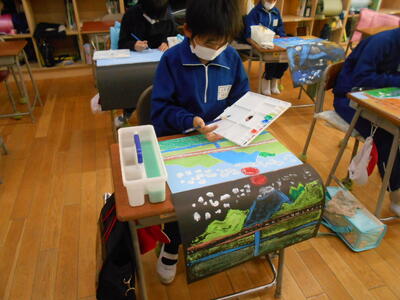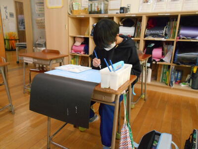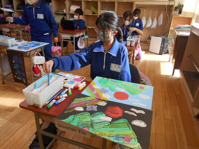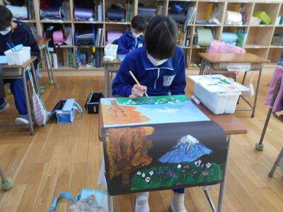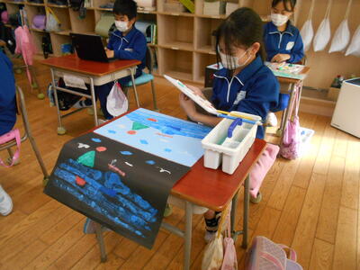 今日は、4年1組の図工と4年2組の外国語の授業の様子をお伝えしたいと思います。