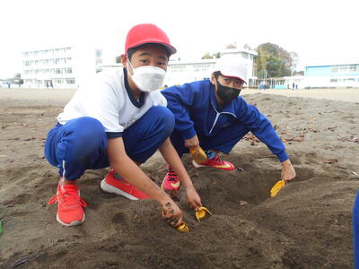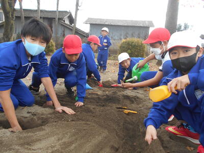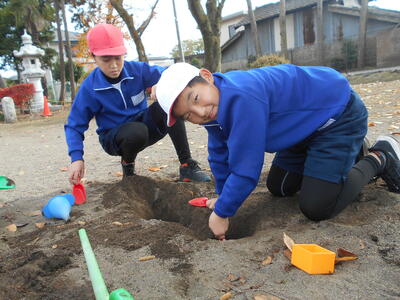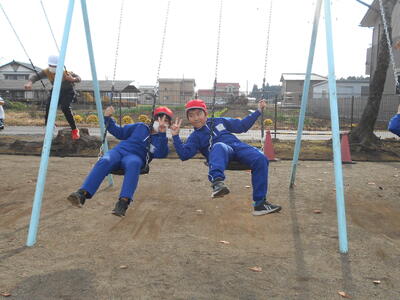 今日は6年生男子が、砂場で楽しそうに砂遊びに興じていました。「楽しいですか?」の問いかけに「はいー」と、なかなか可愛らしい光景です。
