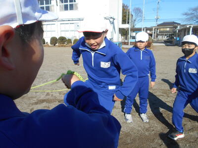 今日の業間の時間は、クラスごとに、大縄跳び『8の字もおかぴょん』の練習を行いました。