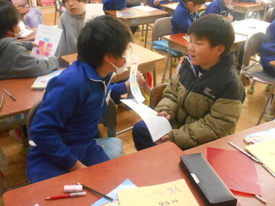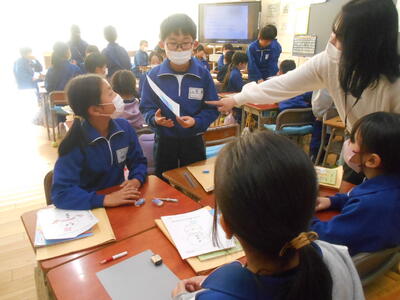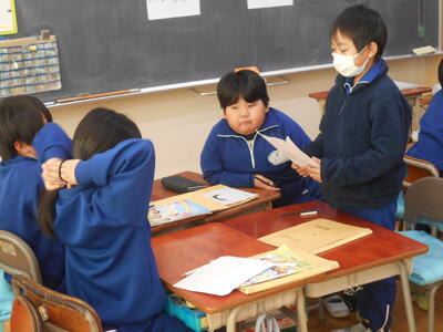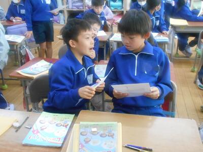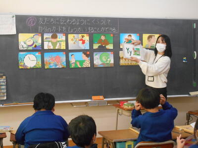 今日のめあては、『友だちに伝わるように工夫して、自分のカードを紹介することができる』です。