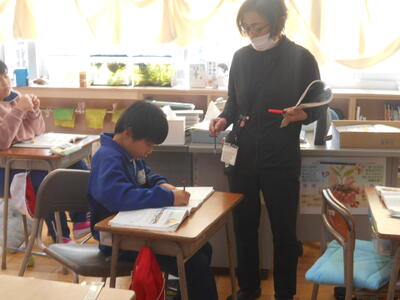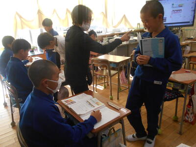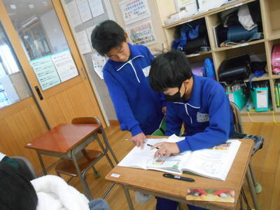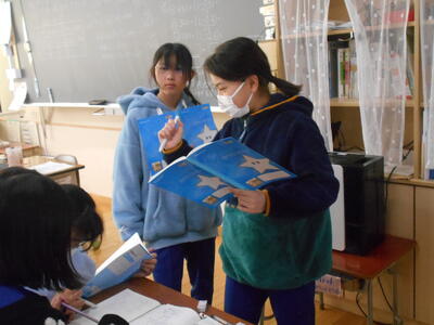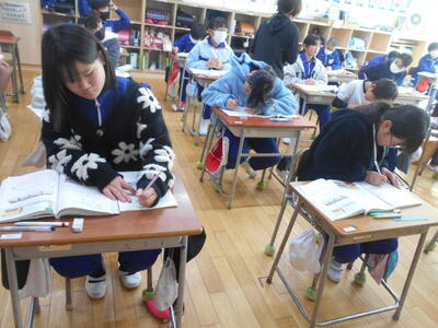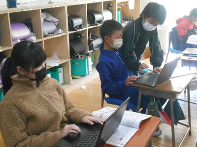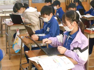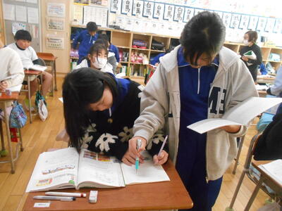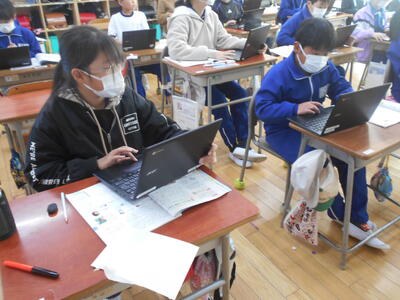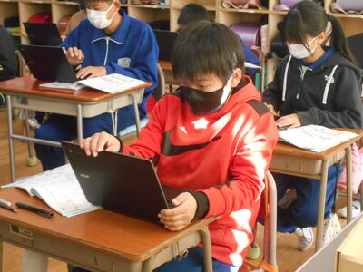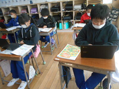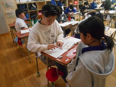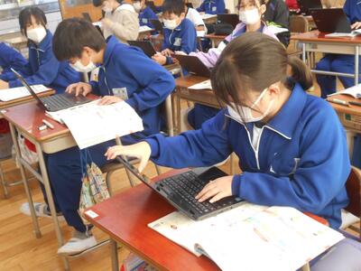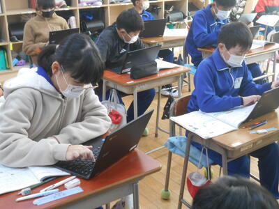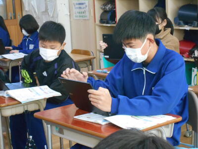 5年1組の家庭科は題材名「物を生かして住みやすく」の授業で、これまで学習したことを生かし、気持ちよく冬休みを過ごすための計画を立てていました。
