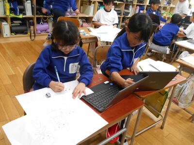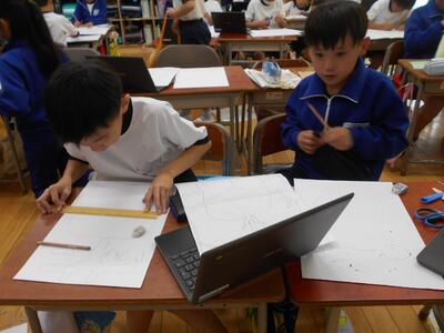 今日は3年生の図工の授業と1年生の生活科見学の様子についてお伝えしたいと思います。