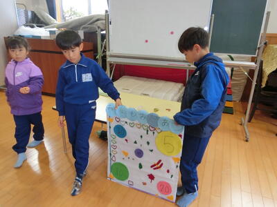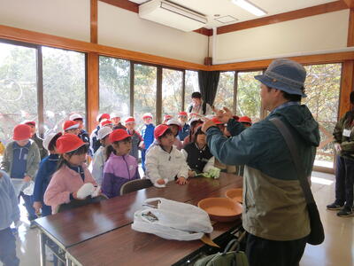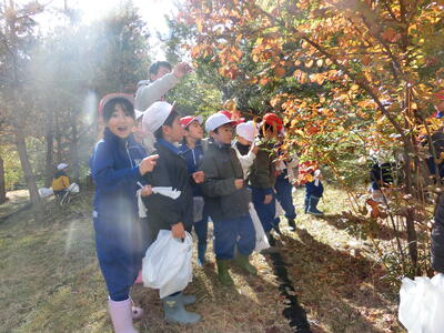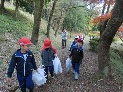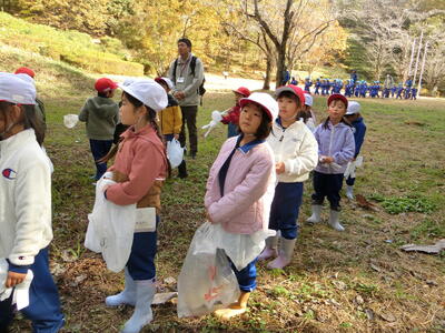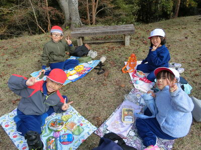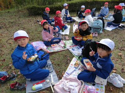 根本山には秋を探しに、ふたば幼稚園では新1年生と一緒にゲームをして楽しみました。